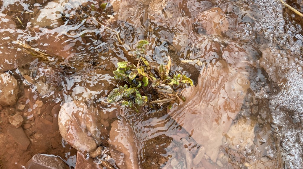 Autre curiosité : cette plante poussait directement dans l’eau. Un genre de cresson? Dur à dire, ça ressemble à rien d’autre, mais elle poussait au ras du petit ruisseau à l’ouest.