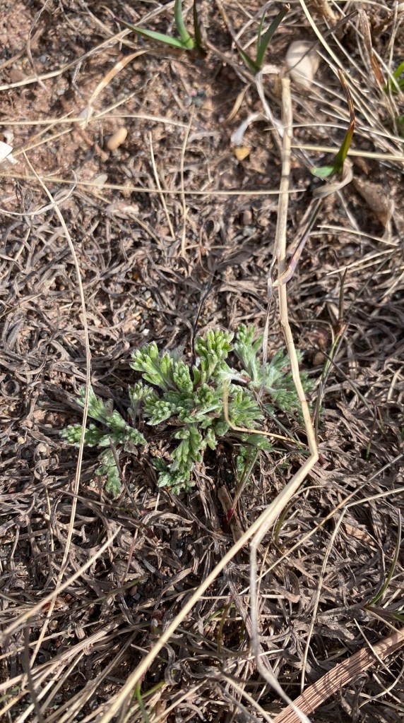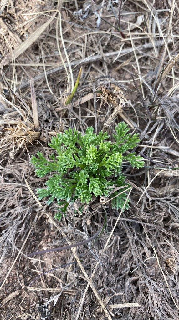 Le 30 avril, je suis retournée sur le banc. J’y ai vu ma belle armoise dans le secteur de la Plage des pêcheurs qui commence à naître. C’est soit de l’armoise champêtre ou de l’armoise capillaire… Pas trop sûre.