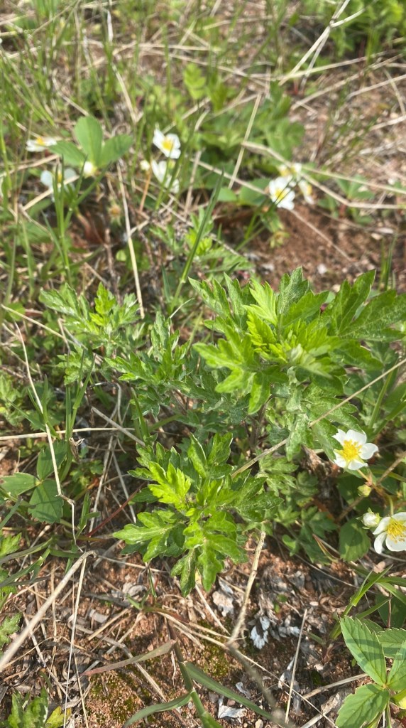 Tout d’abord, en ce 10 juin, je suis tombée sur une grande talle de fleurs de fraisiers. En fait, ça fait un bon deux semaines qu’elles fleurissent (fin mai), mais dépendemment d’où on se situe sur le banc, elles ne sont pas au même stade de floraison.