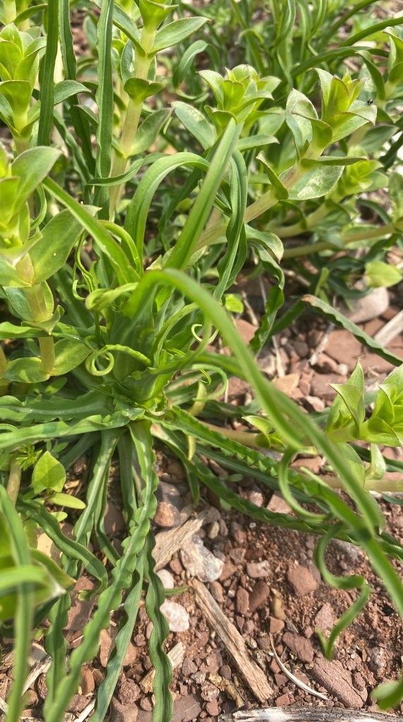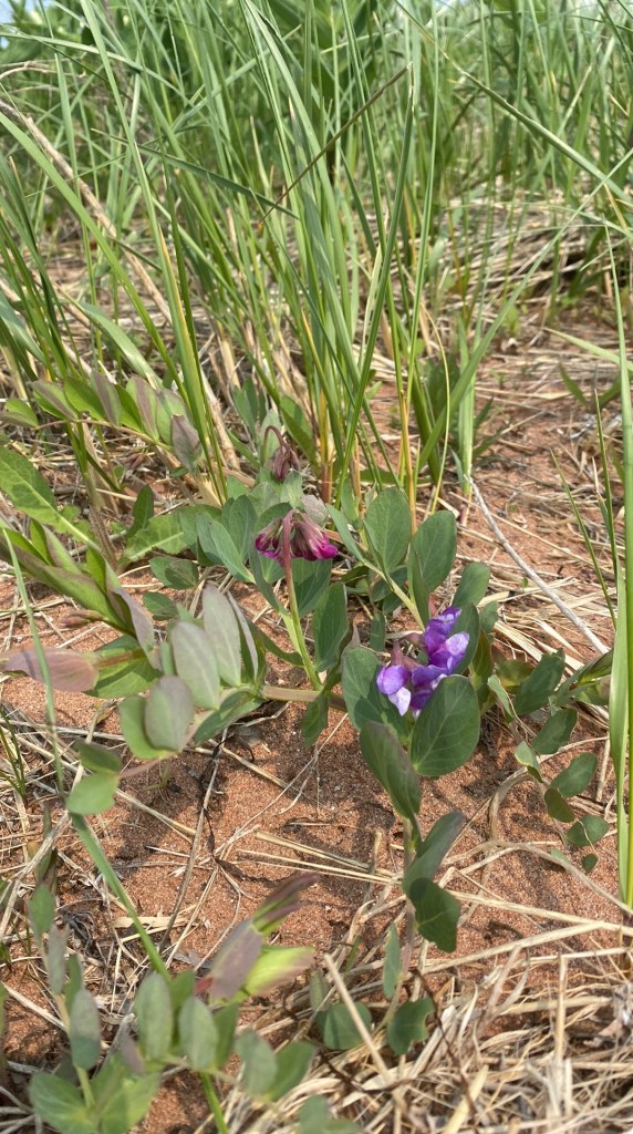 Bon, j’ai vu apparaître la gesse maritime il y a quelques semaines déjà, mais là, plusieurs d’entre elles étaient en fleurs! Un 10 juin! Ça m’a impressionnée. J’ai même mangé mes premières fleurs.