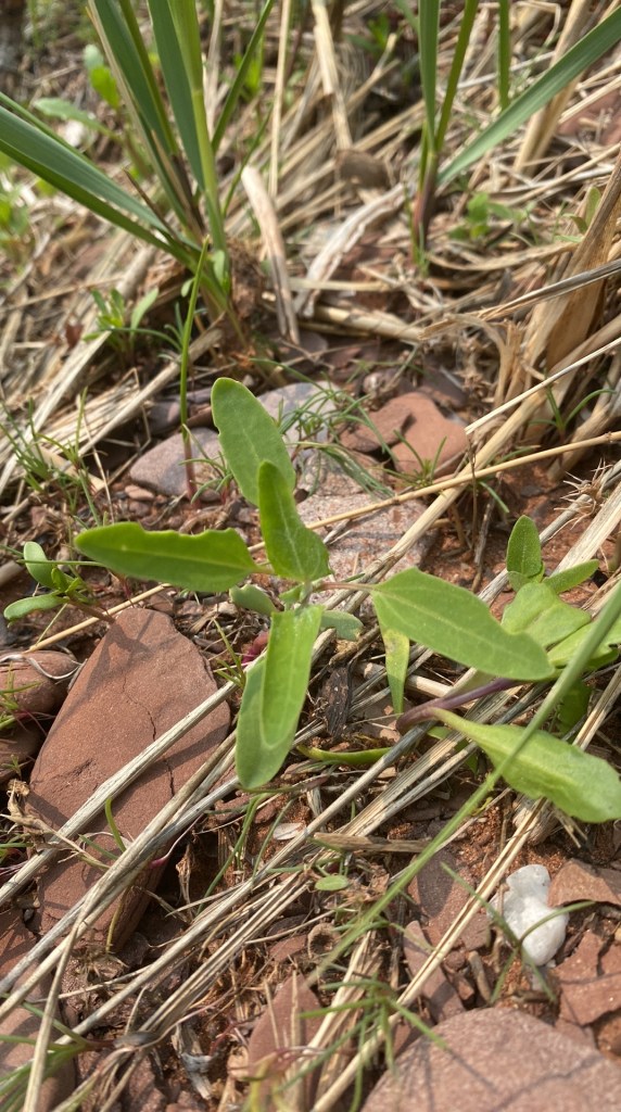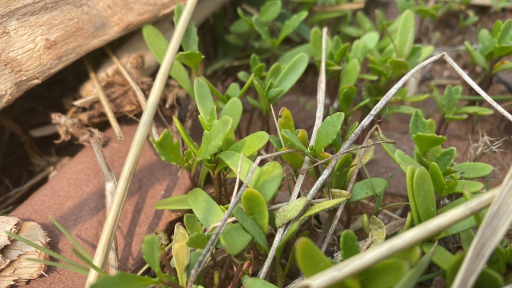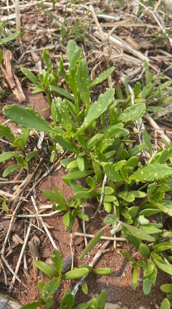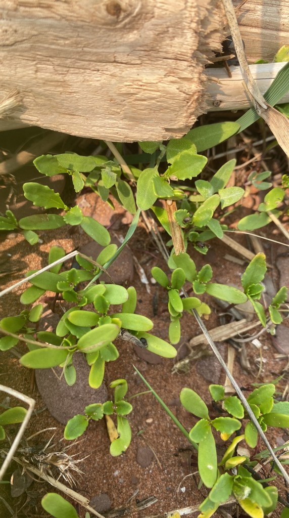 Puis, ci-bas, voici un petit chénopode blanc. Comme on le voit, ses feuilles sont vraiment allongées.