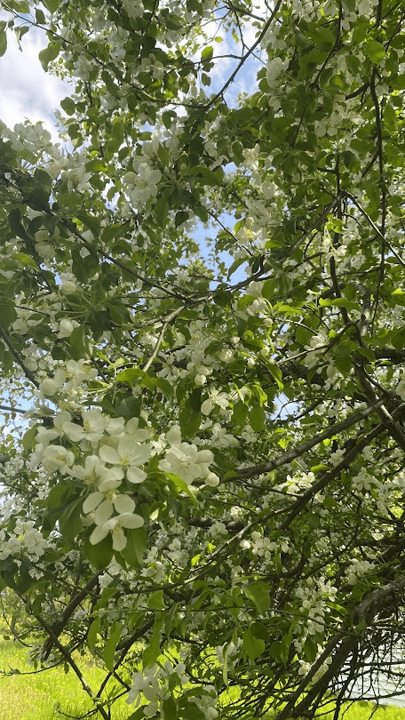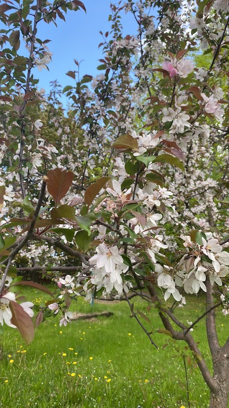 Ensuite, surprise! Les pommiers sont en fleurs ici depuis début juin!
